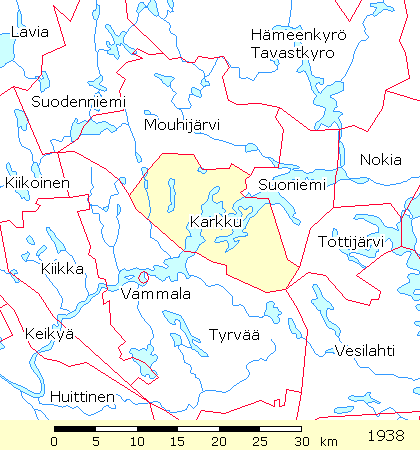 The Genealogical Society of Finland Opiston kartta Karkun Evankelinen opisto Karkku Salmi säätiö & Salmin pitäjä Hakku – Portti Suomen geologiseen tietoon Kalmbergin kartasto] Mouhijärvi, Karkku, Vesilahti, Tottijärvi
